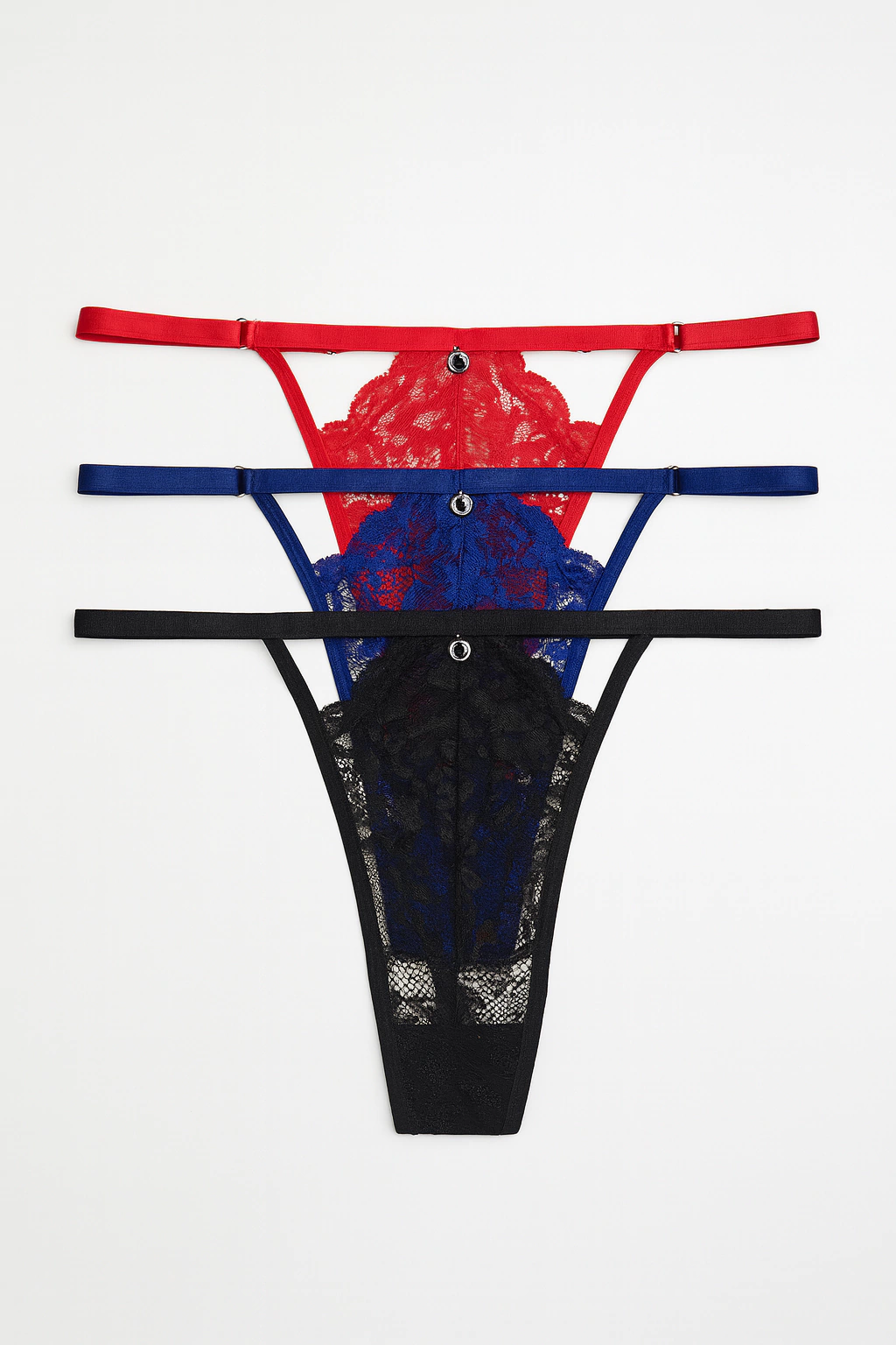 Descubrí el Pack de 3 Tangas hilo Amazonas, una opción ideal para quienes buscan sensualidad y comodidad en una sola prenda. Este set exclusivo incluye tres tangas ultra sexys: una en color negro, una roja y una azul, perfectas para combinar con tu lencería favorita o sorprender en una ocasión especial.